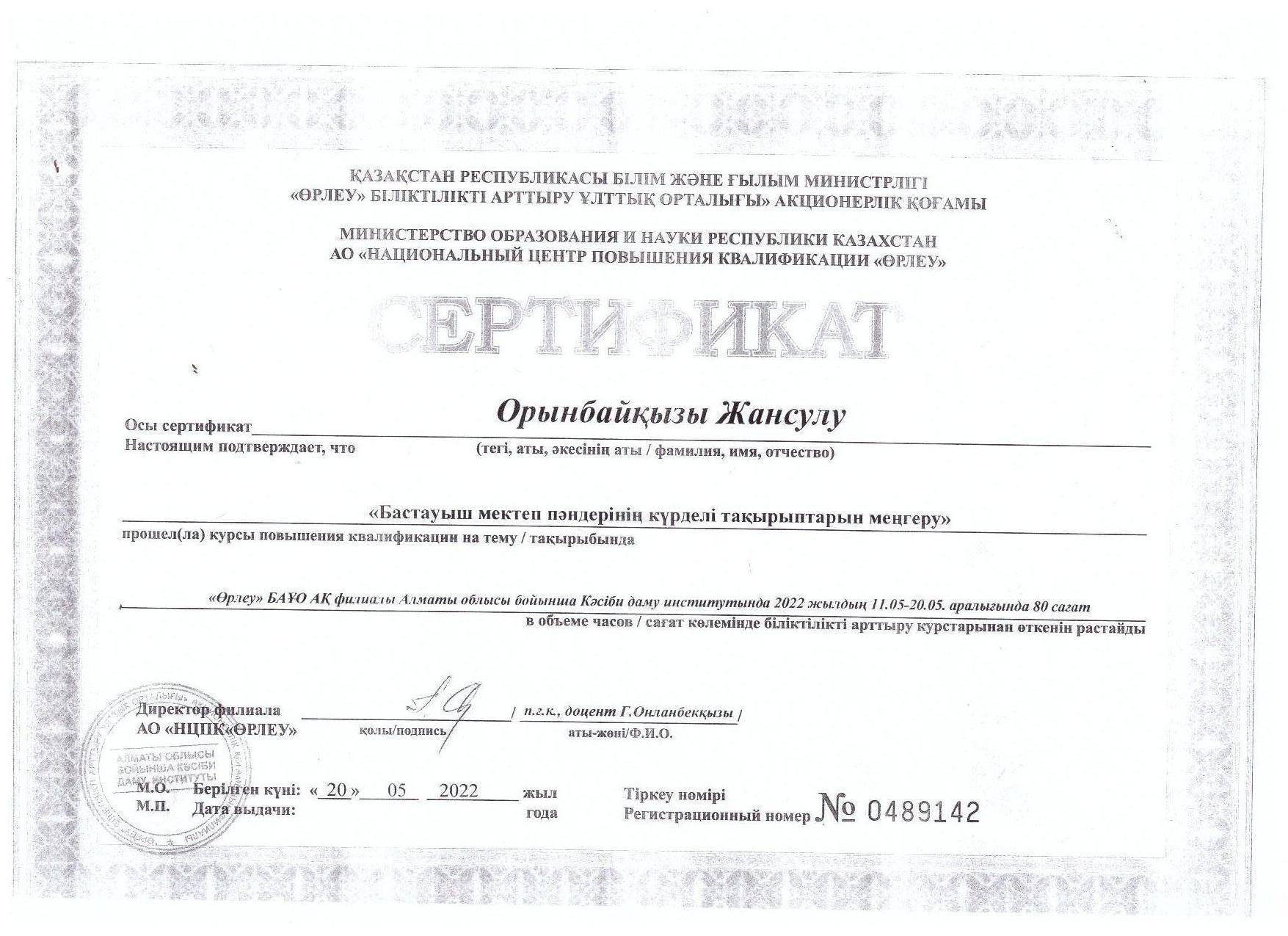 Сертификат 2022 » Жылыбұлақ аулының орта мектебі