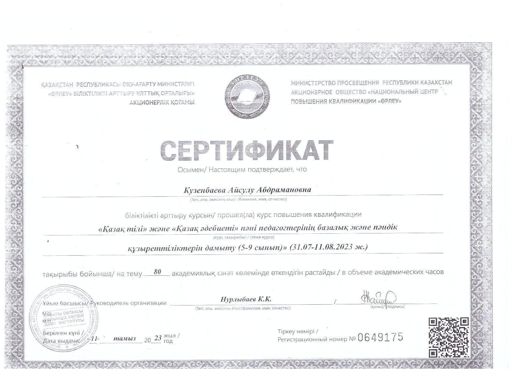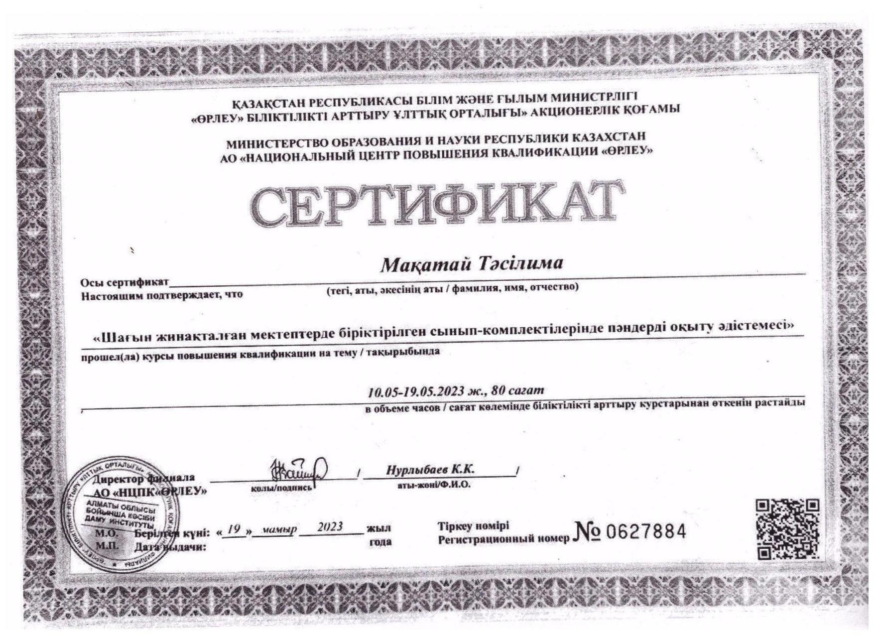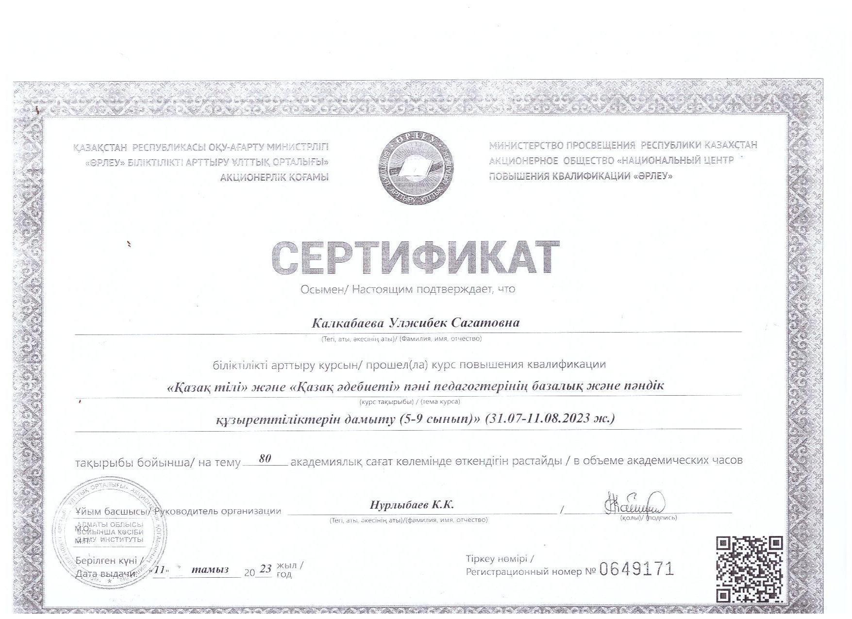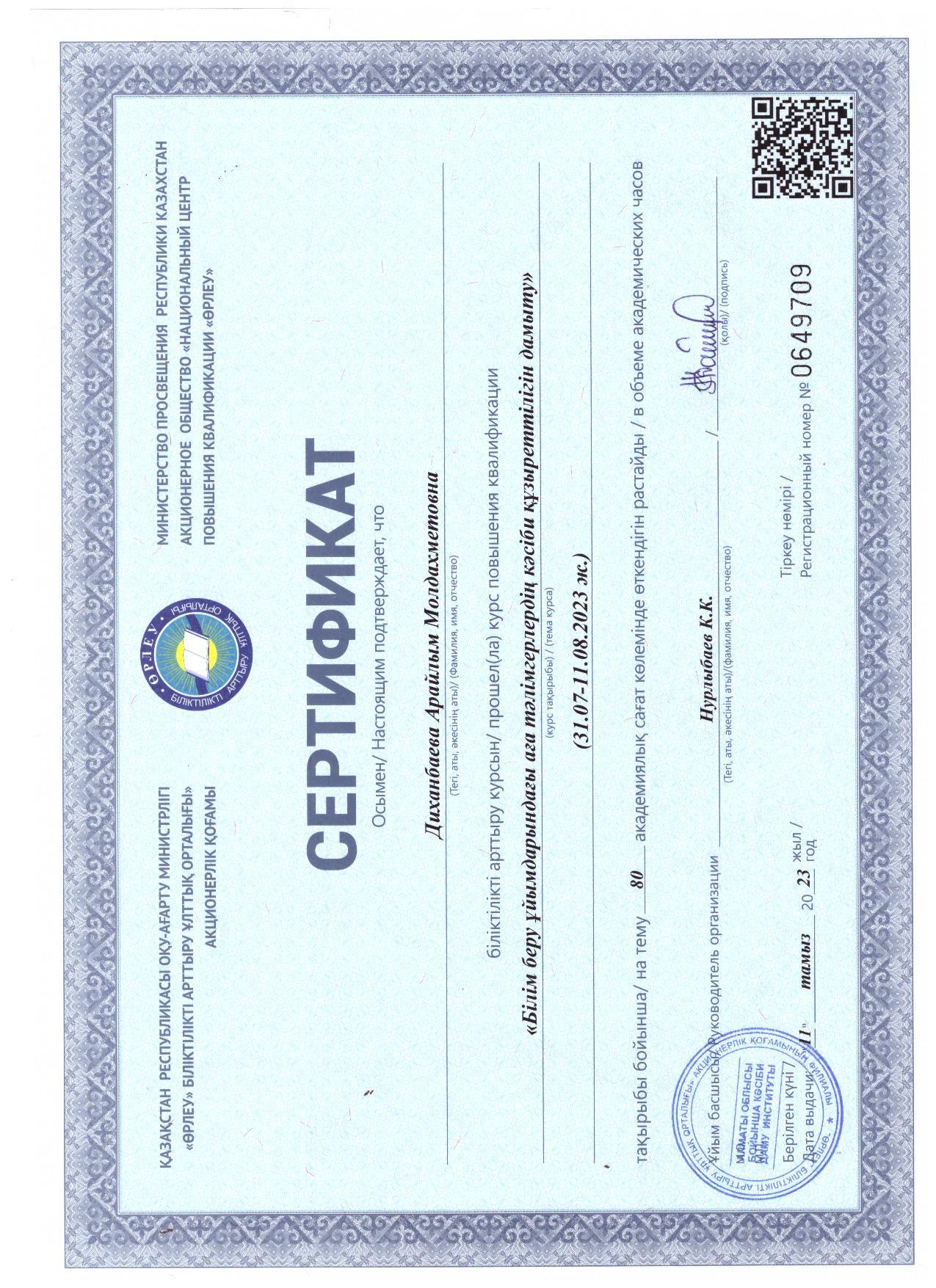 СЕРТИФИКАТ 2023 » Жылыбұлақ аулының орта мектебі